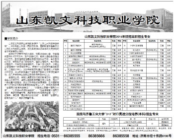 山东凯文科技职业学院 招生电话:0531—86385555 86385666 86385558 地址:济南市经十东路6196号