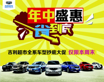 吉利超市全系现车、现合格证、发票,手续齐全当天新车开回家!