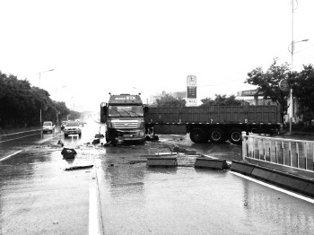 据了解,货车下坡时刹车失灵,眼看有几辆车从路边的加油站出来,为避免发生更大的事故,货车司机撞向中央隔离护栏迫使车辆停止。莱阳公路局路政工作人员紧急对车祸现场进行清理。 本报记者 赵金阳 通讯员 徐彦飞 龚安静 摄影报道