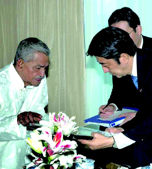 安倍会见帕尔的后人(左)。 (资料片)