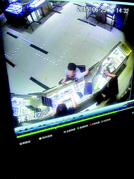事情还得回溯到6月25日下午2点半,身穿灰T恤的王明走进了泉城路附近一家珠宝店。