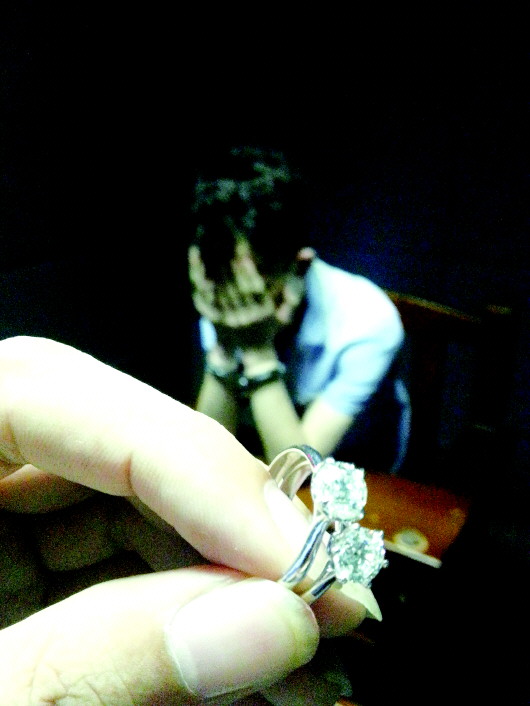 26日,偷窃了两枚价值16万元钻戒的王明(化名)捂脸啜泣。 本报记者 尉伟 摄