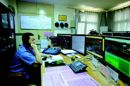 刚走进济南东站“隐蔽”和“人迹罕至“的信号楼的行车室,记者听到的就是此起彼伏的电话声和不绝于耳的各项指令下达声,9个显示屏和4台电话机是他们的工作设备,前排坐着2名信号员,他们负责不同方向列车的接发车信号;后面是车站值班员,也就是马逸群的工作位置,所有列车的进入和驶出全都由他发号指令进行操控。每一位工作人员都是表情严肃,马逸群双眼正紧盯屏幕,左手抓着电话,右手还拿着对讲机下达命令,“正常情况下接一列车需要四五个电话,差不多一天需要上千个。”马逸群告诉记者,长期说话造成嗓子经常“冒烟”状态,还患有咽喉炎,耳朵甚至也会出现幻听的情况。