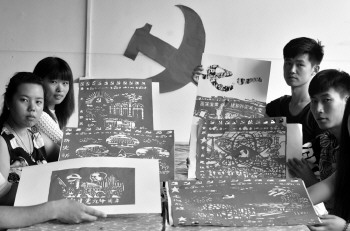 6月29日,为庆祝中国共产党建党94周年的到来,聊城大学美术学院大学生们开展了以“迎七一感党恩”为主题的庆祝建党94周年剪纸创作活动。大学生们结合自己的专业特长用刻刀、剪刀,剪、刻出一幅幅关于建党题材的剪纸作品。