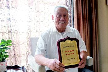 活动上,中国老促会为87岁的刘锷颁发了写有“抗战精神 光照千秋”的纪念牌。