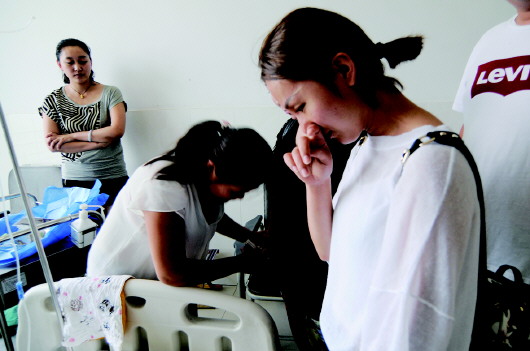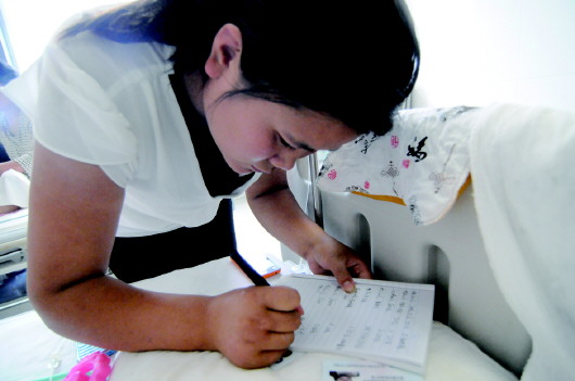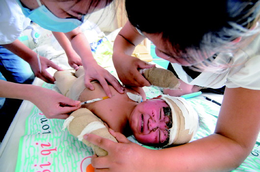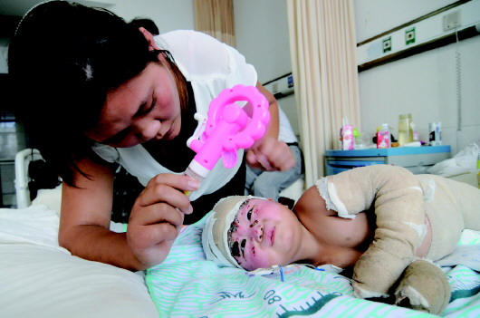 “孩子很坚强,虽然被烧的那么严重,但平时一点也不哭闹。”在临床为孩子看病的晁伟跃先生拿出500元钱塞到李凤鹃手中。