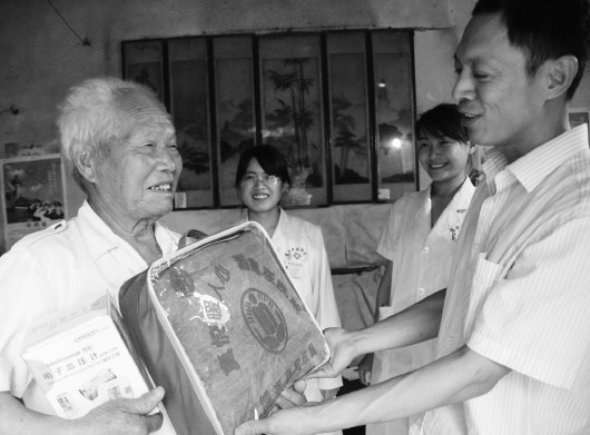 博兴县民政局工作人员给优抚老人送血压计等。 (资料图)