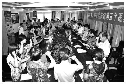 本报6月29日讯 (记者 于鹏飞 通讯员 常永亮 马军 徐雯雯) 6月26日是第五届中国医师节,今年的主题为“医患同心,关爱医师”。为庆祝第五届医师节的到来,激发全院医务工作者积极投身医疗事业及医院建设的热情,6月25日,莱芜市人民医院召开庆祝第五届医师节座谈会。在座谈会现场,2015“德医双馨医师”、重点学科和质量管理示范科室主任、新增医院医疗质量管理员、2014年“十佳医师”代表等60余人参加了会议。