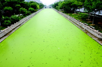 29日,玉龙河张店华光路至人民西路路口河段漂浮着大量的浮萍。近一周来,这1.4公里的河道变成了绿油油的“草原”,河水还散发出臭味。由于浮萍个头较小,环卫部门打捞起来比较困难。环保部门表示,浮萍是从上游冲下来的,并非河水被污染,玉龙河经过治理,水质已相对稳定,目前城区河段也没有排污口。不少市民表示,相关部门应尽快采取措施,让玉龙河河水尽快变清起来。 本报记者 王鸿哲 摄影报道