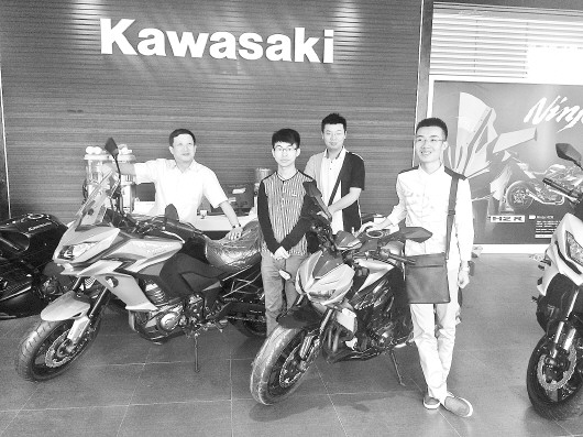 ◤景芝队主帅曹大元与棋手们一同参观机车展厅。