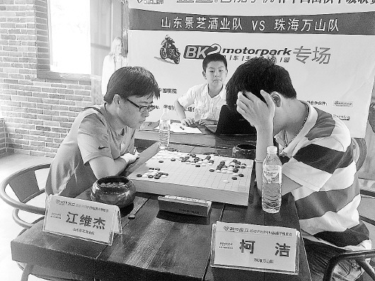 印象中的围棋对弈似乎应该是一茶一扇,细品慢下,一局结束已是烂柯千年。而本轮山东队与珠海队的主将之战却在下午两点钟就早早结束了。对弈双方正是景芝世界冠军江维杰与新科世界冠军柯洁,而去年联赛,柯洁的12连胜就终结在江维杰的手中。本想报一箭之仇,不承想事与愿违,本局终以江维杰执白,中盘胜出结束。