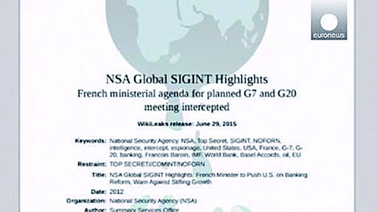 路透社6月29日援引维基揭秘网消息报道,2011年到2014年间,时任法国财长弗朗索瓦·巴鲁安和皮埃尔·莫斯科维奇成为美国监听目标。