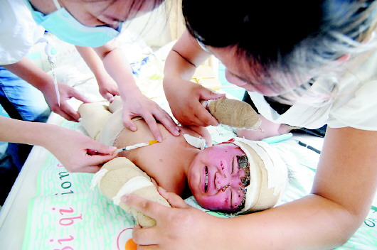 ▲小安妮烧伤非常严重,疼到哭不出声来。