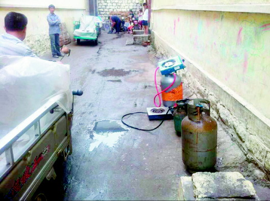 当天上午9点半,记者赶到现场时,明火已被附近居民和消防人员扑灭。在事发民房的门口,三个被抢救出来的煤气罐被放置在路边,空气中仍能闻到刺鼻的焦煳味。在事发民房二层西侧的一个窗户,玻璃已经完全破碎,连挡在窗户外的防护钢筋也在爆炸中变了形。
