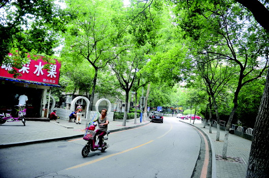 ◥济南佛山苑小区的街道像主街一样整洁。