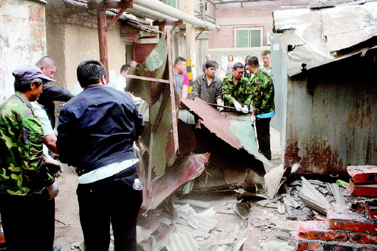 拆除胜利大街乱搭乱建。