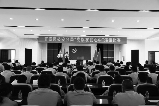 为隆重纪念中国共产党建党94周年,6月30日下午,滨州市公安局开发区分局在中海大厦三楼举行了“党旗在我心中”演讲比赛。比赛从分局机关5个党支部和杜店、园区、沙河、里则4个派出所党支部各推出一名选手参加比赛。通过近2个小时的角逐,分局机关经侦大队党支部的李刚等6名选手在比赛中脱颖而出,分别获得一、二、三等奖。