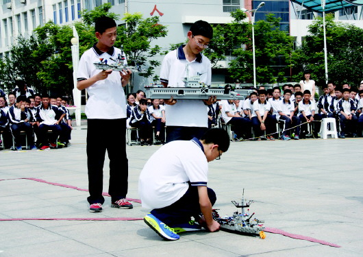 6月26日,滨城区第六中学举行第一届校园科技文化节成果展评活动。本届校园科技文化节以“创新·体验·成长”为主题,自5月份至今持续月余。成果展示内容涵盖“静态”、“动态”两大类。其中静态成果包含“科普小报、科学幻想画、小发明、小创造、手工技艺制作”等数百项丰富内容,动态成果包括“机器人、海陆战舰、气泵发射器、远航战舰、环保服装展示、花车巡游展示”等二十多种作品。学校组织相关人员对展示成果及作品进行评比,并将择优推报参加省、市、区级比赛。