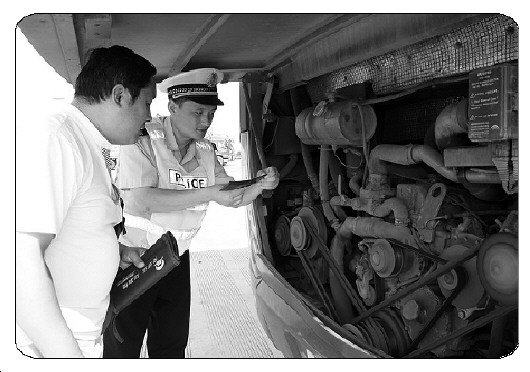大图:市高速交警支队组织夜查行动,加大对通行辖区“两客一危” 车辆的管控力度。 小图:高速交警对过境客车进行安全检查