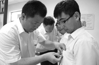 七一前夕,薛城供电部举行仪式,老党员为新党员戴上党徽。当天30余名新老党员一起宣读入党誓词,激励党员信念,坚定崇高理想。 本报通讯员 张艳 本报记者 袁鹏 摄影报道