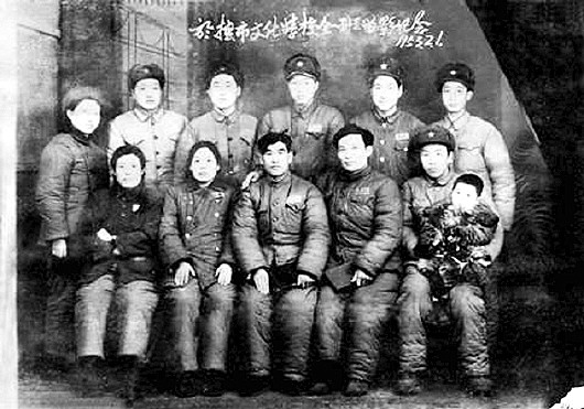 建国后,母亲调到沈阳军区后勤部被服总厂,1952年底参加了部队组织的文化学习班。这次文化班历时3个月,学会了查字典,借着字典看家书、信件和报纸,还学会了用算盘记账。文化学习结业考试,母亲以优秀成绩得到军区后勤政治部的嘉奖。之后不管工作发生什么变化,母亲养成了坚持文化学习和看报纸的习惯。母亲说,她从一个孤儿、苦孩子走上革命道路,成为一名光荣的军人和党的基层干部,是党和部队培养教育的结果,她感到十分幸运和自豪。这张老照片是1953年2月部队文化学习班结业时全班同学的合影,前排左二是我的母亲。
