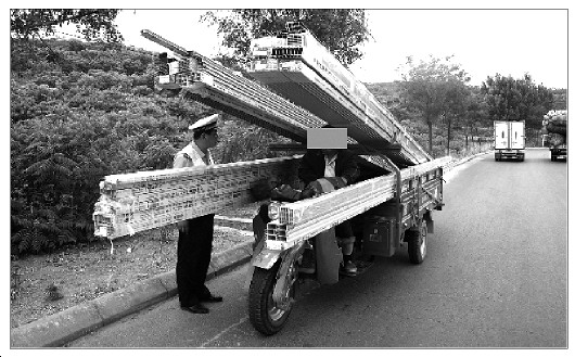 本报7月1日讯 (记者 于鹏飞 通讯员 张泽文 石刚) 6月28日,一辆三轮摩托车为了能多装载货物,驾驶员竟然能置生死于不顾,把脑袋夹在货物中间行驶,堪称运输行业的“奇葩”。如果不是遇上公安交警,还不知道这辆三轮摩托车能惹多大事。