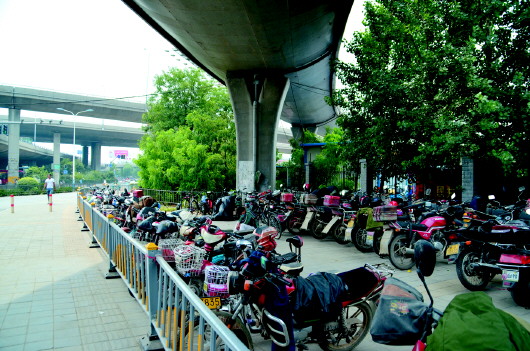 电动车常被偷 维持秩序设停车处