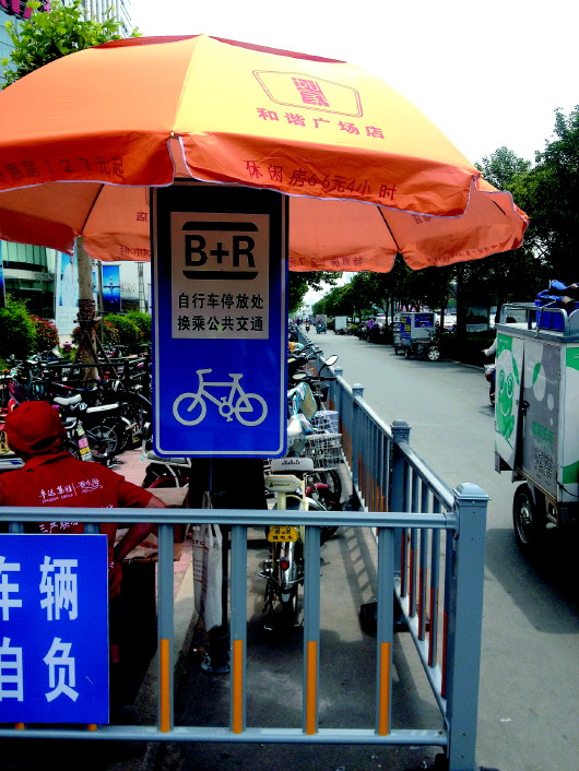 这样,槐荫区交警大队才规划这一非机动车停车场。由和谐广场出资,将该路段改造成为“B+R”“P+R”换乘停车点。在保证非机动车正常通行的情况下,在距离路沿石0.7米处,安装了百余米的隔离护栏,安装了交通提示牌,在人行道处预留了行人通行空间。