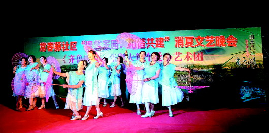 本报7月4日讯(记者 肖龙凤 通讯员 王平) “这演出看得太过瘾了!”7月3日晚,齐鲁晚报张刚大篷车公益艺术团走进长清崮云湖街道常春藤社区消夏晚会,作为主力的“兵妈妈”爱心艺术团倾情演出。良友出租爱心车队专车接送艺术团成员,精彩的节目受到社区居民的热烈欢迎,欢快的笑声和热烈的掌声久久响彻在小区的夜空,为炎炎夏日增添了阵阵清凉。