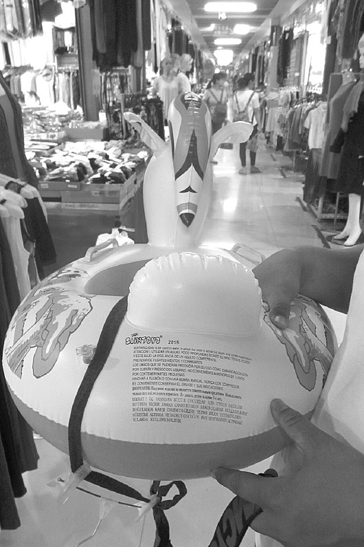 随后,在调查的另外4家店铺中,仅一家店铺的游泳圈上标有“执行标准:GB6675-2003”、“生产厂家”、“联系方式”、“生产日期”等说明,以及警示语“3岁以下儿童禁玩”、“此产品非救生设备,仅供在成年人监护下浅水中使用”等。