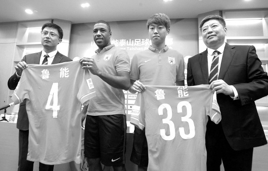 7月5日早上,鲁能泰山俱乐部在驻地召开“新援见面会”,尤西雷·达·席尔瓦和高准翼正式与媒体、球迷见面。接下来,尤西雷将身披4号球衣,高准翼将穿上鲁能33号战袍。