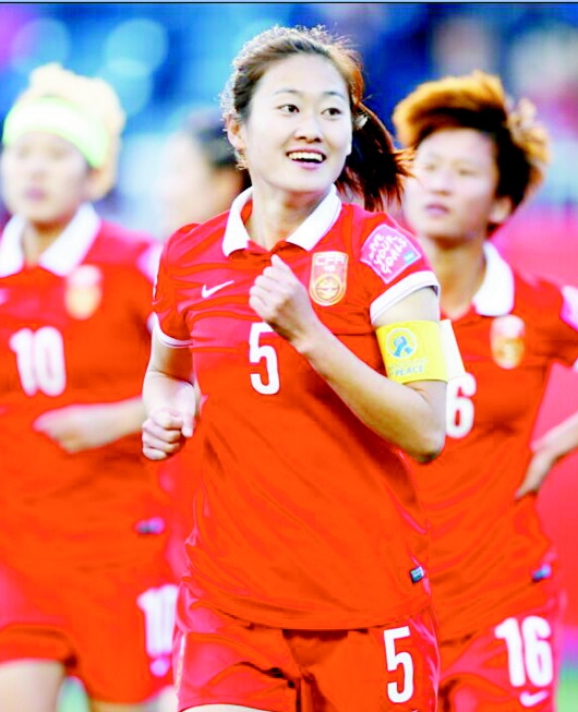 吴海燕作为女足国家队队长征战世界杯。 新华社发