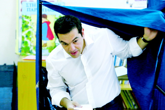 7月5日,在希腊雅典,希腊总理齐普拉斯参加投票。 新华/美联