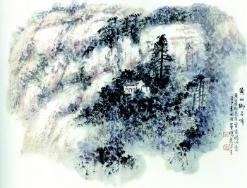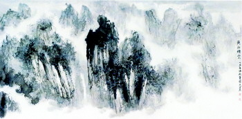《黄山烟云》空灵与迷幻的水墨世界使人深深地感受到画家对自然的真情和非凡的艺术表现力。《九龙飞瀑》的雄厚与幽邃得“天地之气,自然之道”,画家与精神意象之间探索其独到的艺术语言——这语言是精神的,它既超越古典主义的造型观念与陈旧的笔墨观和空间构成,从而充分地显示出艺术的个性美。李可染先生对自然的敏锐观察力和强烈的审美感悟曾给予曙光诸多启迪,钟情造化并极力寻找新的审美视角是其成功的重要因素,前人所谓“石涛得黄山之魂,渐江得黄山之质,梅清写黄山之影”,盖是画家的风格所在。其景不同其境其法亦异。黄山特殊的地理构质——花岗岩的山石,峭壁虬松,对画家来说,自然可谓是一种特殊意义的师承,若渐江那富有金石趣味的线条所表现的奇松与方峻的石块,无疑来自自然中荒山的本来品质。可染先生曾言:“人离开大自然,离开传统,不可能有任何创作”,曙光反复与造化中体味传统的笔墨法则,同时把写生作为视觉和心灵同时观照大自然的最佳途径。反言之,同样画黄山,渐江潇逸冷峻,垢道人苍莽古朴,李可染雄厚壮美,刘海粟斑斓豪迈。“一片自然风景是一个心灵的境界”,艺术的境界是画家心灵的外化。前人画中极少表现黄山的丘壑幽邃,烟霞迷蒙、林木丛深的壮丽景观,要表现时代之风采,就必须有所创造。曙光将点线的金石气与水墨的丰富意韵相糅合,不仅是笔墨上的,而且是整体美感上苍润相济,所谓干裂秋风,润含春雨,和李可染先生一样,董曙光用墨的核心是积墨法,黄宾虹先生说,“积墨法以米元章的最备,深点丛树,自淡增浓,墨气爽朗,此天所不能胜人者。”积墨法至宾翁又一境界,浑厚华兹,前无古人。可染先生将积墨法与西画的明暗技法相融合,别开生面。曙光在《黄山烟雨图》中,以宋元及渐江诸大家画法为基础,渴笔焦墨反复皴斫结合老僧补衲般的积墨与水反复铺染等手法的运用,奇峰峭立,烟云幻化,完全不再是前人心目中冷峭或秀逸的黄山,展示了大自然奇异瑰伟的壮丽之美,画面苍莽雄奇,气象朴茂,丰富的笔墨意蕴,幽远超迈的画境,得到自然之天趣,黄山之真性,弥漫着诱人的艺术魅力。雄强而细腻的抒情风格,充满浪漫情调,让人无法回避的走进对生命意识的感悟之中。《黄山飞来石》则以长短线条勾勒,敷以明丽的青绿,色与墨的浑化,明与暗的过渡,深浅、浓淡、燥润的对比,使得画面淋漓清朗,苍秀中充满腴润之感,丰富而强烈的视觉效果显示出旺盛的艺术生命力。