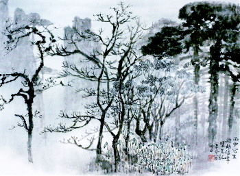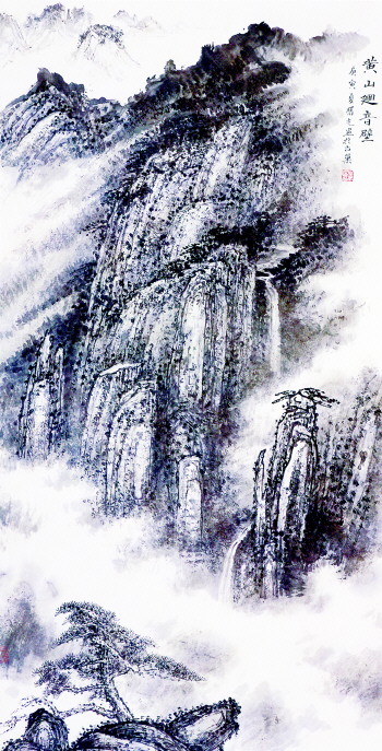 董曙光是巢湖国画院专业画家,出自对黄山的向往和对历代黄山画家的钦慕,于1978年春首次登上黄山,并有幸相遇来黄山写生的李可染先生。曙光出示习作求教,先生嘉勉之余,又针砭时弊,谈了许多自己的创作体会和精辟的理论简介,并示范对景作画,给曙光留下了深刻的印象,曙光后来撰文称:“这次黄山之行,是我学画以来收获最大的一次”,也正是这次“黄山之缘”,使曙光与先生结下了深厚师生之谊。此后在先生的悉心指导下,曙光临习了大量古代绘画,努力感悟传统山水画的文化内涵和笔墨精华,为丰富和完善艺术表现手法,奠定了丰富的底气。十几年后,曙光再次走出画室,应西海饭店之约,主持艺术画廊,并与笔者及杨平共同策划,编著“黄山艺术丛书”。朝夕与云山相伴,耽情烟霞,胸寓丘壑,几年来,创作了数百幅“黄山系列绘画”。置身于黄山的奇松怪石和云海之间,面对雨霁飞瀑或雪后晨曦,我尝即席式地印证了董曙光的艺术世界。画家在拥有深厚的传统笔墨功力和得天独厚的自然条件同时,力避浅显的物象再现,努力表现对自然的感受,追求强烈的艺术个性。