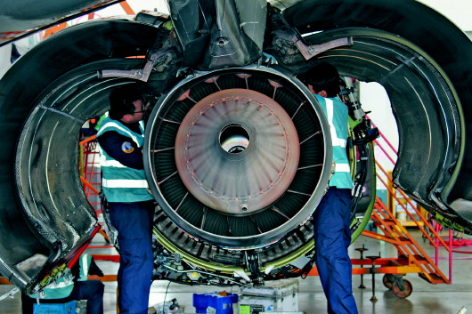 7月份,航空运输旺季来到。山航工程技术公司各个维修单位摩拳擦掌、整装待发,积极投入到旺季保障状态。工作人员们加班加点、攻坚克难,以旺盛的精力和饱满的激情为飞机提供周到的维修保养,确保每架飞机安全投入运行。图为机务们正在对飞机的“心脏”——发动机做全面的检查。 (通讯员 王瑞 摄)