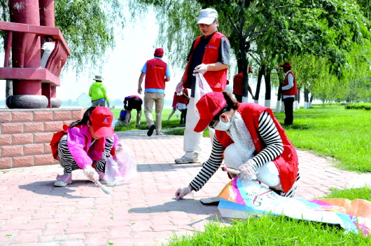 鄄城志愿者苏冬华也带着8岁的女儿周晶参加活动,母女两人合作,一会就捡了一袋垃圾,“带着孩子来参加活动,就是培养孩子不乱扔垃圾的环保理念。”