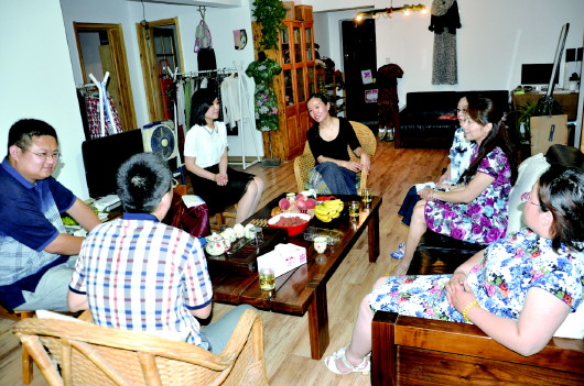 我与东东是发小,经常看她穿着特别符合自己的气质,很喜欢,后来她便推荐我来找杜鹃做衣服,接触久了发现她是一位恬淡、安静、从容的女子,我们也因此慢慢地走得越来越近。其实杜鹃也是比较文艺的一个人,就像在制衣方面,虽然她在衬衣领等衣服的细节上一直都有改动,但是这么多年来,以唐装、旗袍等为主流却一直都没变。她也一直都在不断的学习,虽然从不主动追赶流行,但是一般她做出来的衣服,穿在身上会让人感觉衣服被穿活了,很有灵性。