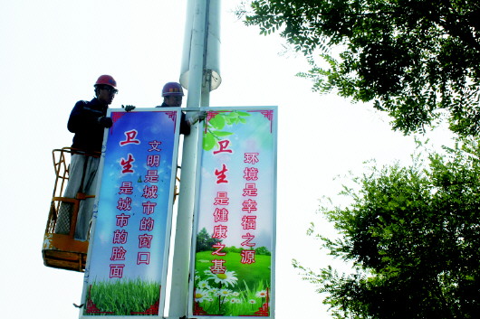 市路灯处利用路灯杆悬挂刀旗,进行强势宣传,提高卫生城市迎审知晓率。刀旗宣传主要注重打造整体宣传道路网,以形成黄河二路、黄河五路、黄河八路、新立河西路、渤海十五路、渤海十八路“三横三纵”宣传圈,确保刀旗平均分布。从而在市区形成人人关心、支持、参与国家卫生城市迎审活动的良好氛围,推进迎审宣传工作落实到位。宣传刀旗安装工作已于7月3日开始实施,正在有序推进之中,目前,共安装道旗790面。