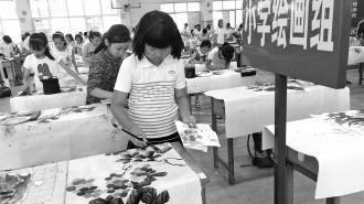 7月5日,2015年“阳光下成长”中小学生现场书画大赛在威海二中南校区举行,本次比赛由市教育局主办,分书法、国画、水粉静物写生3个项目,近200名中小学生现场展示才艺。