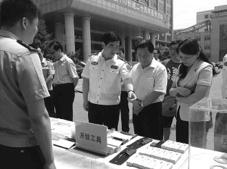 在纪念活动现场,警方展示110破获案件中缴获的赃物。 本报记者 袁鹏 摄