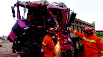 到达现场后,救援官兵发现两辆运送沙土的自卸车正面发生撞击,造成其中一辆自卸车车头完全凹陷,司机浑身是血被卡在驾驶室内。经过一个多小时的紧张救援,驾驶员被成功救出,救援官兵将其从车辆前窗抬出,送往医院急救。 本报记者 柳斌 通讯员 张圣伟 摄影报道