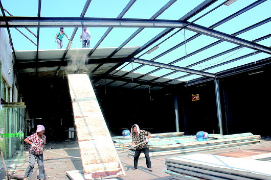 本报郓城7月6日讯(记者 邓兴宇) 学校竟然用泡沫夹芯板搭建学生餐厅,2日,在山东省郓城消防大队执法人员的现场监督下,郓城县高级中学校园内的7000多平方米泡沫夹芯板房被成功拆除。