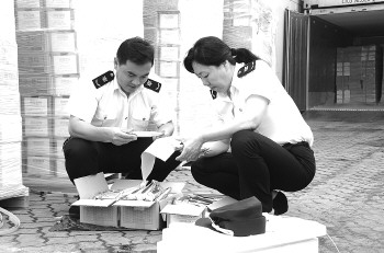 图为日照检验检疫局工作人员对进口韩国冰棍进行现场查验。 本报记者 刘伟 摄影报道
