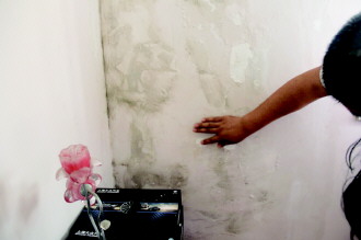 渗水的墙面上墙漆已经脱落了不少。 本报记者 甘倩茹 摄◥