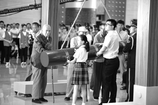 接着,抗战老兵王默村、李子学烈士之子李秀泉、国民党抗战老兵熊绪绂,解放军代表王上攀、大学生代表刘锦韬以及少先队员代表钟文博等6人共同撞响了和平钟,标志着网上山东抗日战争纪念馆暨山东抗日战争主题展正式开馆、开展。