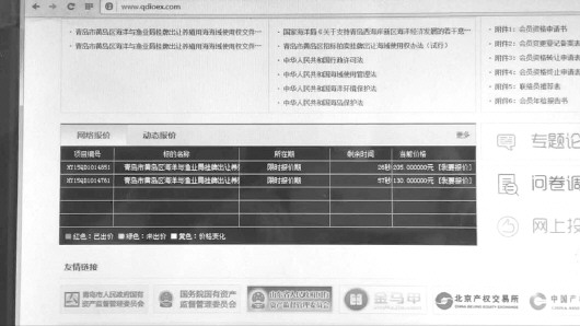 7日,青岛两宗海域在网上展开竞拍,这也是青岛首次进行海域使用权招拍挂。