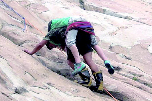 半小时后,救援人员到达山脚下。经与报警人联系询问得知,受伤女孩位于距离山脚很远的山崖上,但说不清楚具体位置。驴友说,女孩受伤时间较长,加上天气炎热,受伤女孩被困在山崖上暴晒在阳光下,很容易发生脱水,出现危险。在没法确定受伤女孩位置的情况下,救援人员迅速找来当地村民作为向导引路,带着救援器材沿着崎岖的山路前行。经过一个小时的奔波,终于到达女孩被困的山崖。