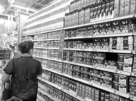 ◥超市里琳琅满目的驱蚊产品,不少人前来选购。