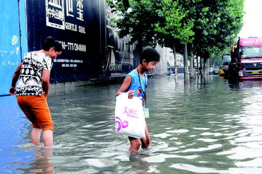 7日,一场阵雨过后,上午9时许,记者在人民路看到最深处积水有二三十厘米深,给出行的市民带来了不便。
